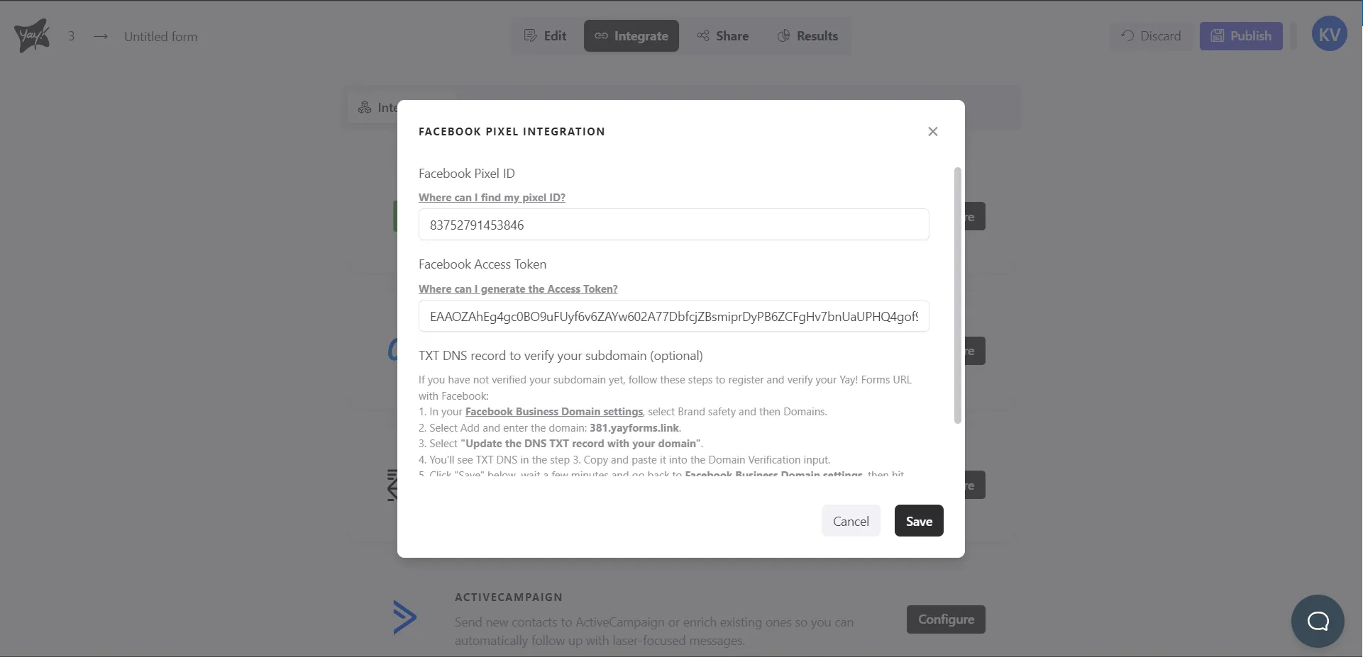 Follow the steps below to integrate Yay! Forms with the Facebook Pixel: